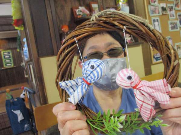 こちらの母達のリクエストで金魚のリース作り🐟