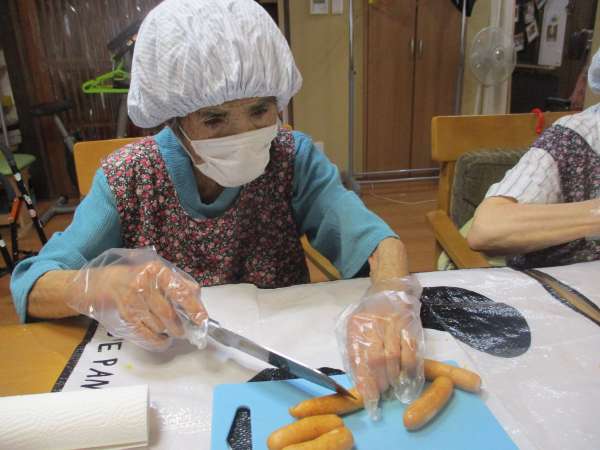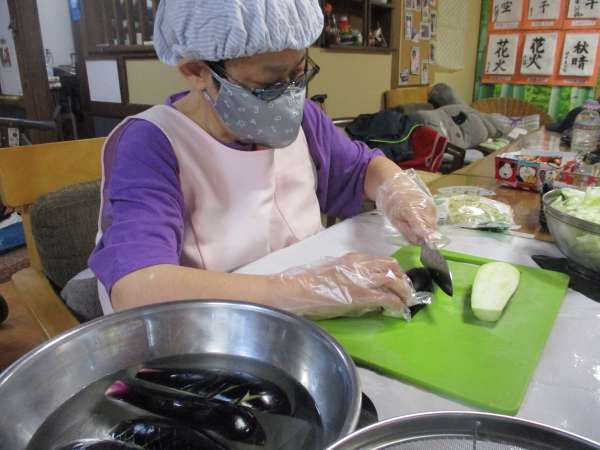 本日は、お母さんたちに、野菜カットをお手伝いしていただきました
