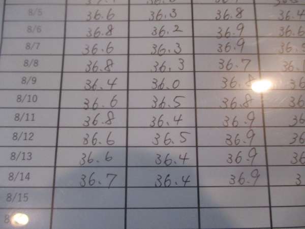 来庵日以外もご自宅で毎日体温を測定していただき記入いただいています。