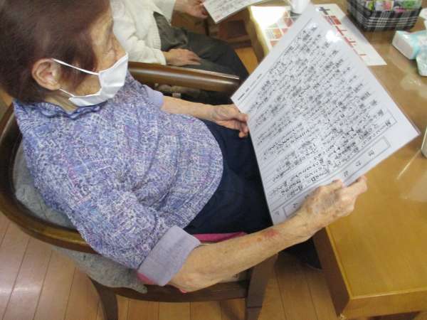 朝会では、ぼけたらあかんの唱和と童謡を歌っていただいております