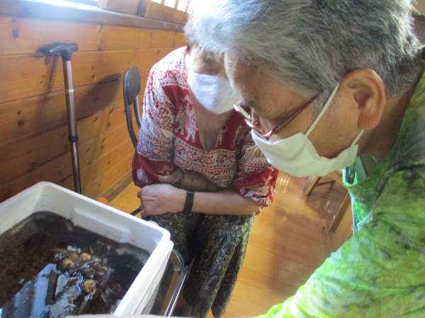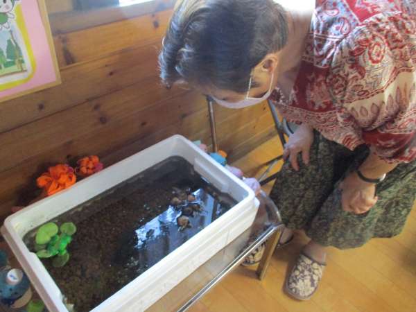 真心の幸望庵のアイドル めだかの様子をご覧になるお母さまハートたち (複数ハート)ハートたち (複数ハート)