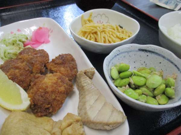 ソースひれかつ&煮魚&きんちゃく煮&ミニパスタ&お豆もあります