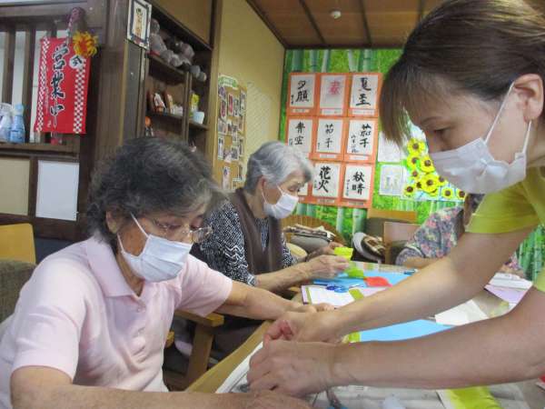 本日は、季節のカレンダー作りや、壁画制作、ハンドベル演奏を