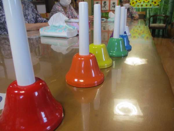 ハンドベルを持っていただいて、きらきらぼし★やチューリップなどを演奏して