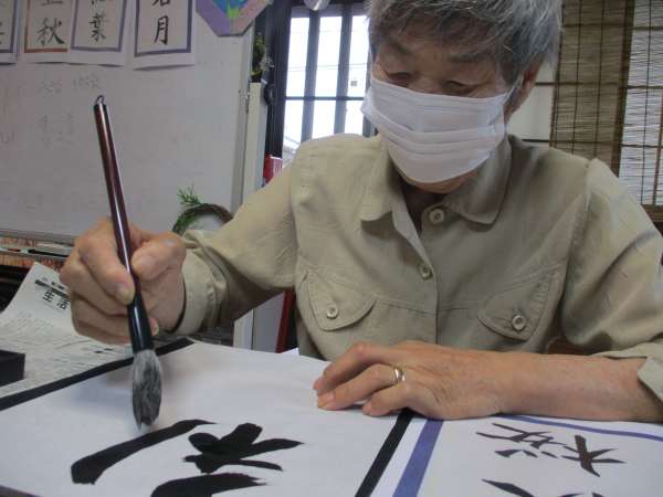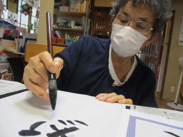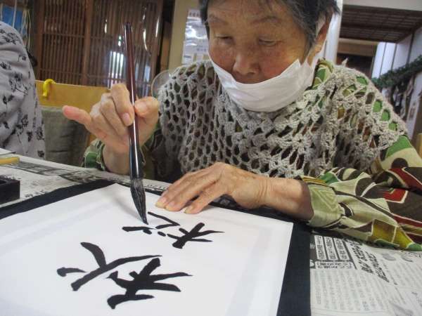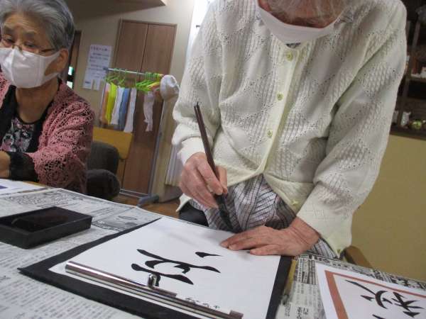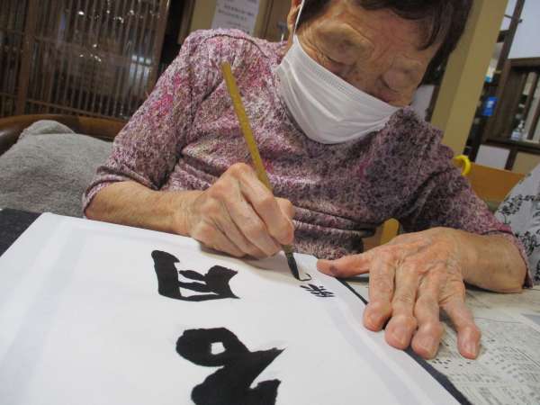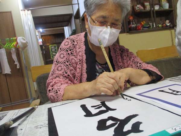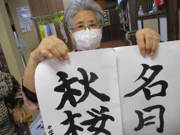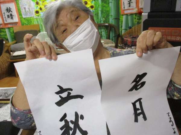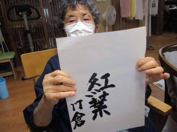 本日の午後レクは秋の書道🖌ぴかぴか (新しい)