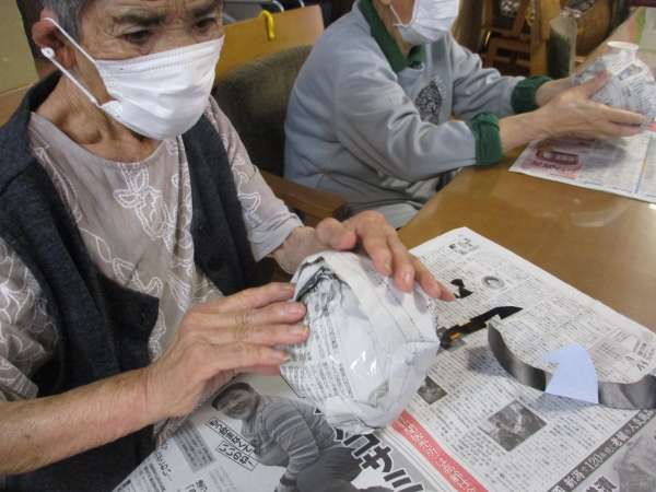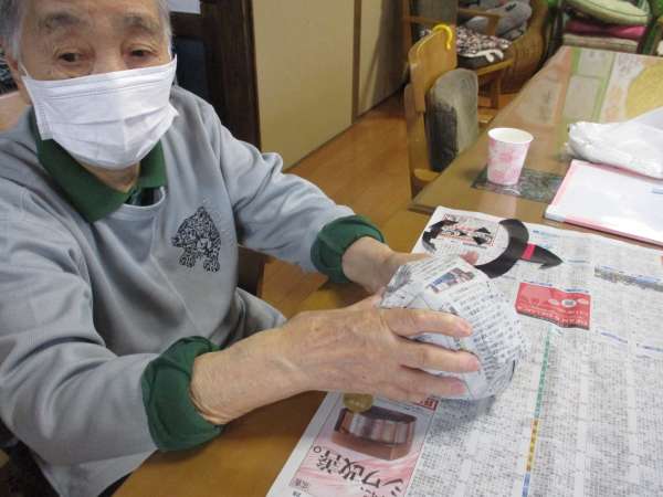新聞紙を丸めることで握力や指先の動きの強化にも繋がりますよ