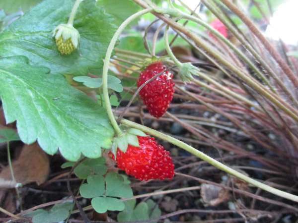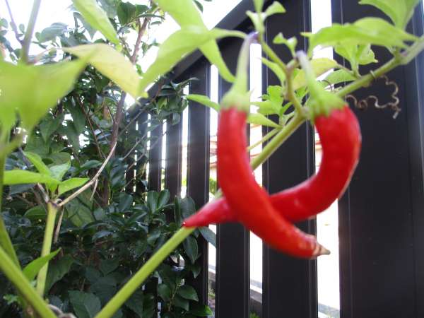 プランターを見ると 唐辛子とイチゴ🍓が実っていました