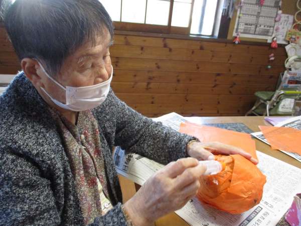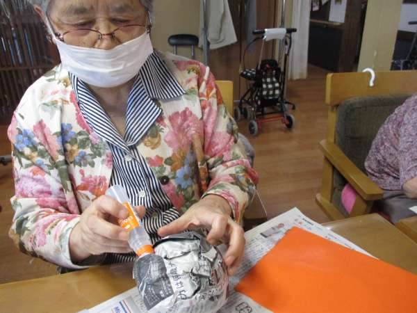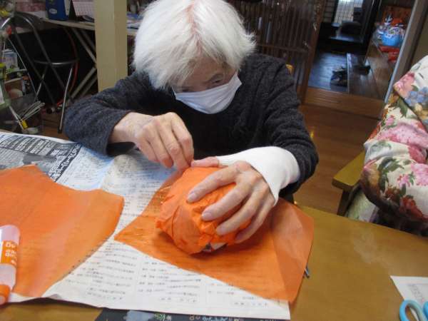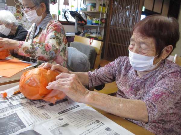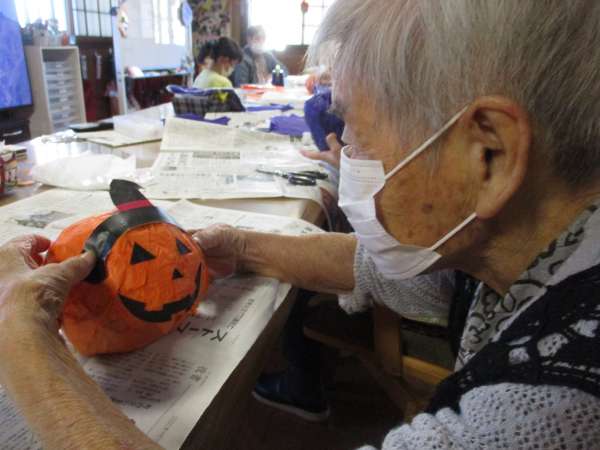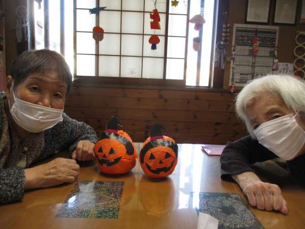 ハロウィンのカボチャ、可愛らしく出来上がりました