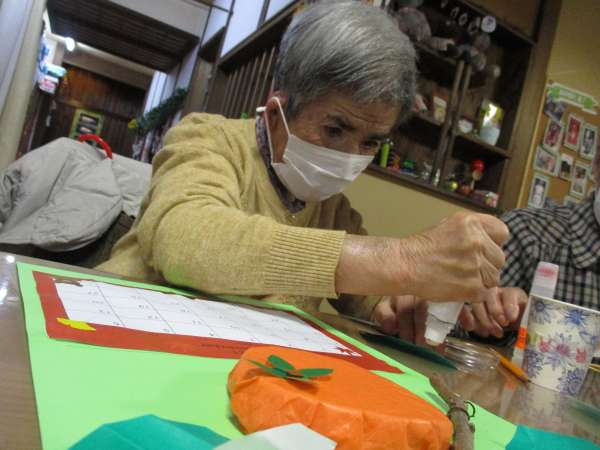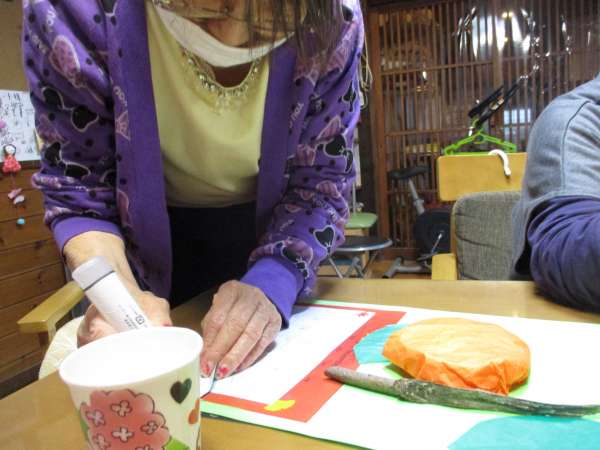 枝は、真心の幸望庵にあった柿の木をスタッフが切ったものを使いました