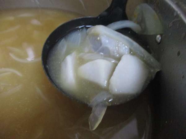 昨日、収穫祭で取ったサトイモをお味噌汁に