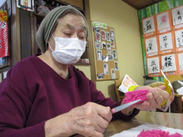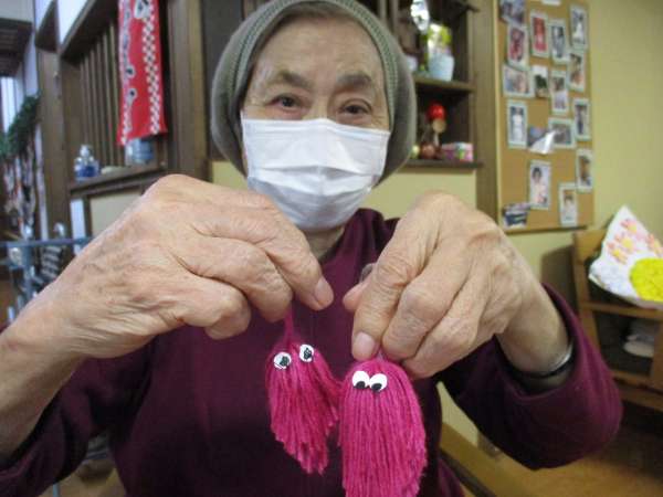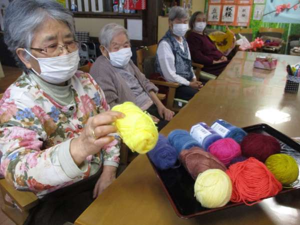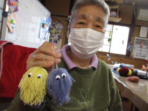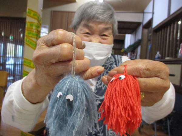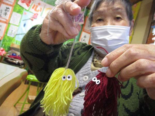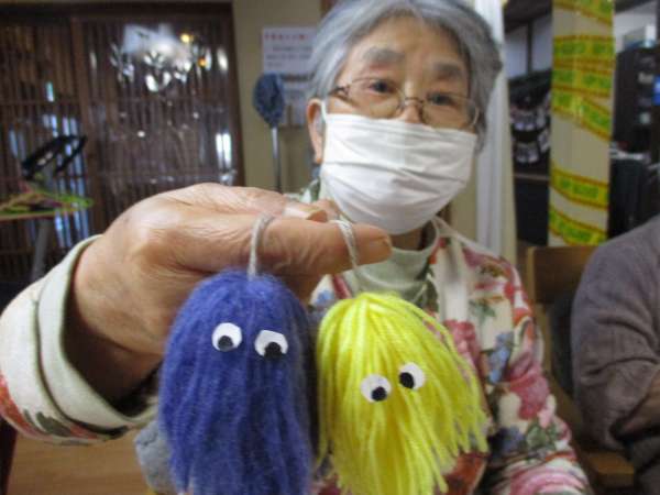 本日の午後レクはこちらのカラフル毛糸を使って皆さんに‘みのむし’を作って頂きます