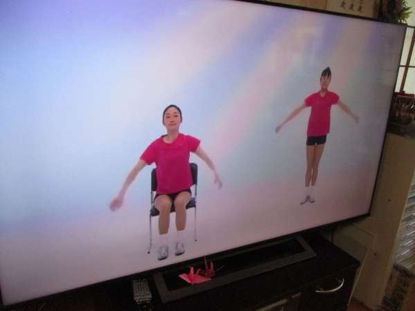 ラジオ体操で体を動かしていきまするんるん (音符)