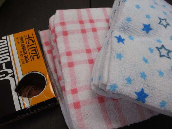 輪ゴムを使ってタオルを止めます