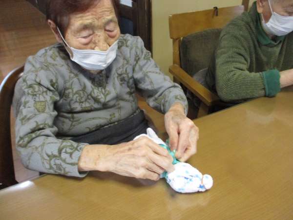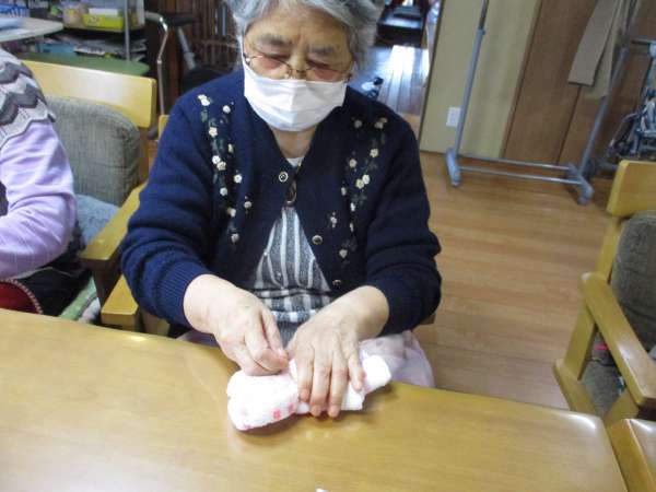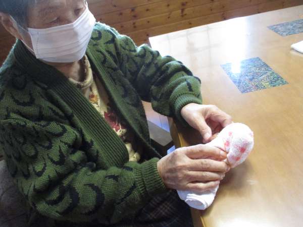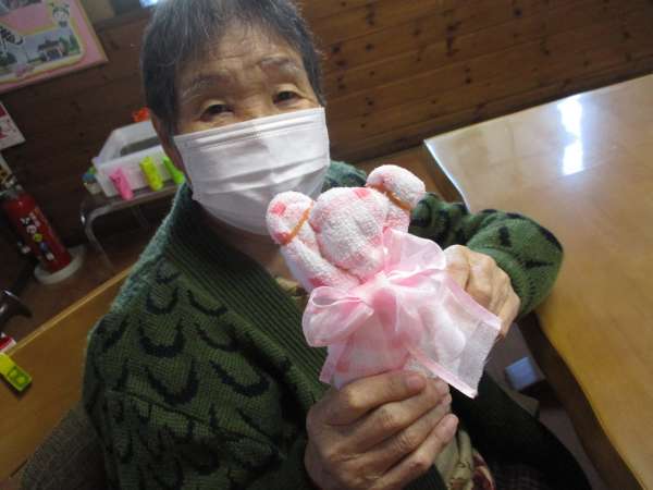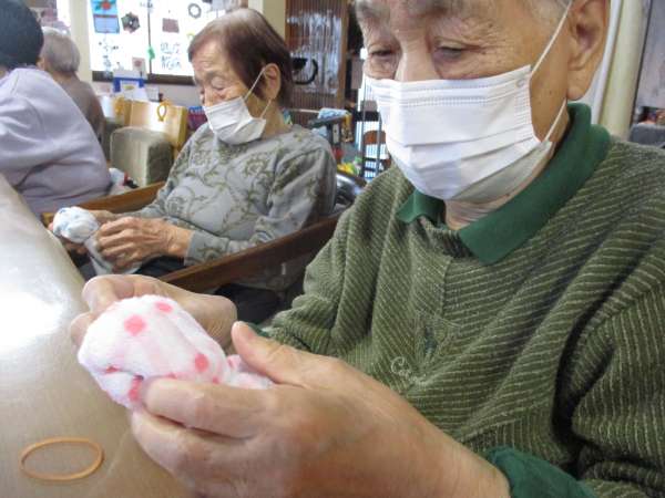 本日は、タオルと輪ゴムを使ってタオルベアーを作ります
