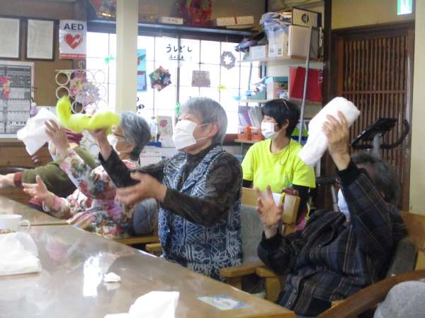 午前中は音楽体操やタオル体操などで身体を動かしていただきます