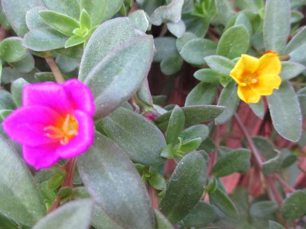 おひさまの日差しでお花が開くポーチュラカも開きはじめています