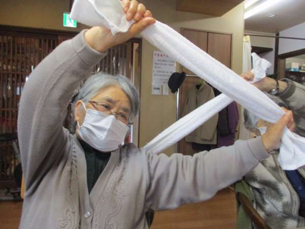タオルを肩幅に合わせ手大きく腕を上げていきましょうグッド (上向き矢印)グッド (上向き矢印)
