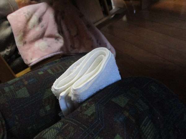 ダンベルの代わりにタオルを丸めて腕の上下運動グッド (上向き矢印)バッド (下向き矢印)