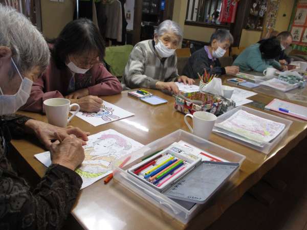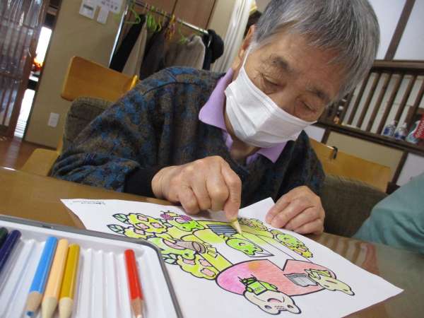 本日の脳トレタイムは塗り絵
