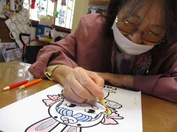 お好きなイラストを選んで頂き塗り絵にチャレンジして頂いております。