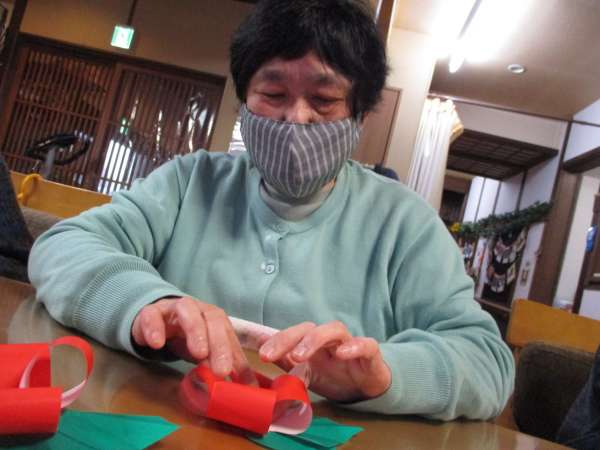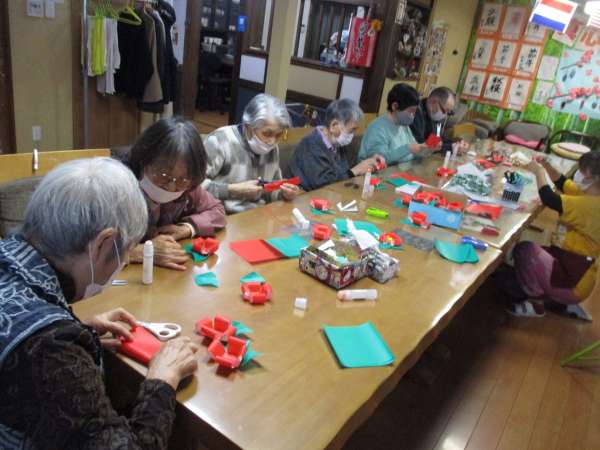 制作レクでは、紙をちぎったり丸めたり、はさみで切ったりのりで貼ったり