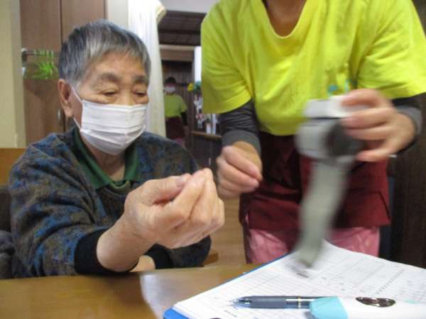 朝ご来庵後は皆様に体調をお聞きしながらバイタルチェックを行います。