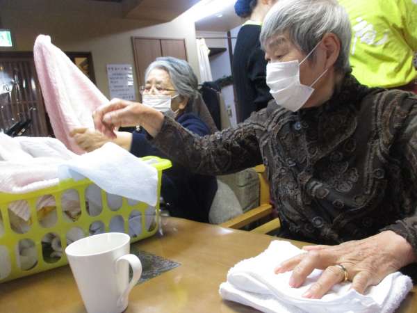 洗濯物をたたんでくださるお母さま