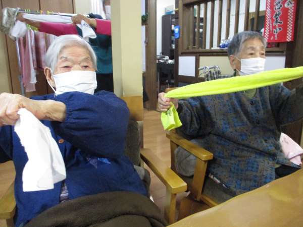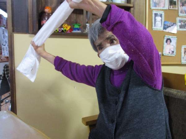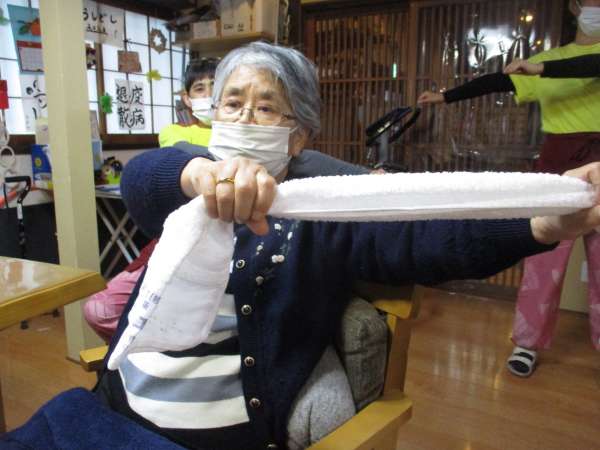 タオル体操で身体を伸ばしていきましょう