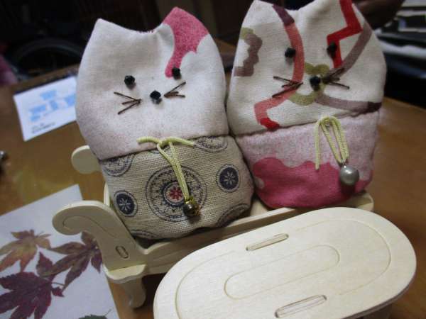 お手玉のネコちゃんに座ってもらいました