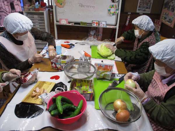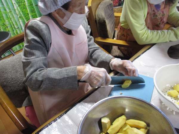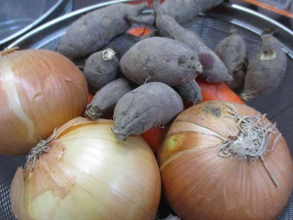 収穫祭で頂いたサツマイモと頂いたきゅうりを使って調理開始