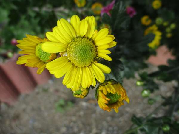 玄関前の菊の花が咲き始めました