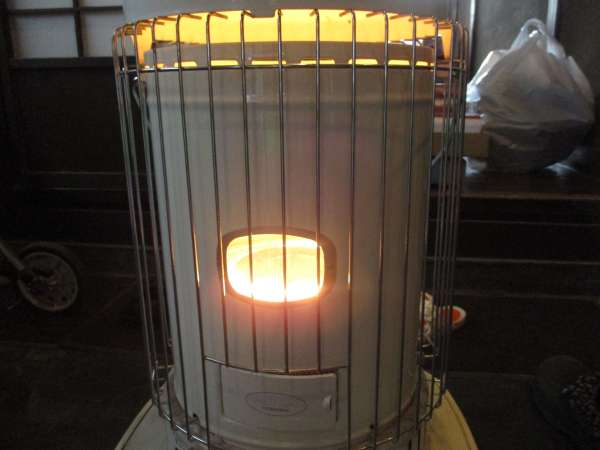 朝は玄関を入ったところの安全な場所でストーブを置いています