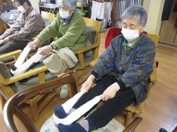 タオルでひざ裏伸ばし