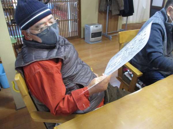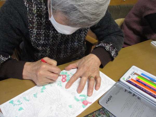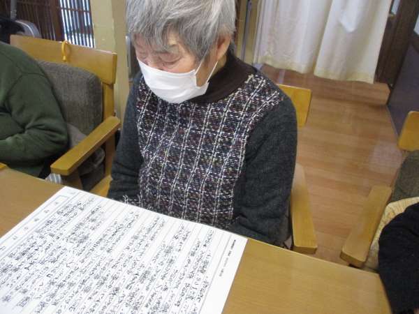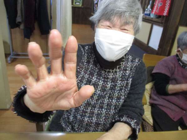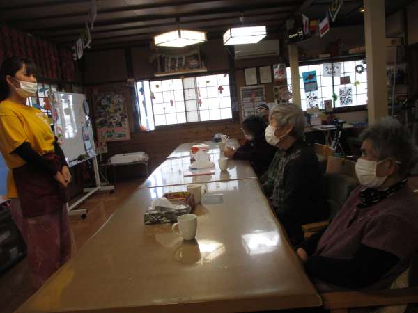 本日、行うレクリエーションなどのお話をさせていただいておりますほっとした顔揺れるハート