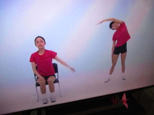 ラジオ体操で体を動かしていきまするんるん (音符)