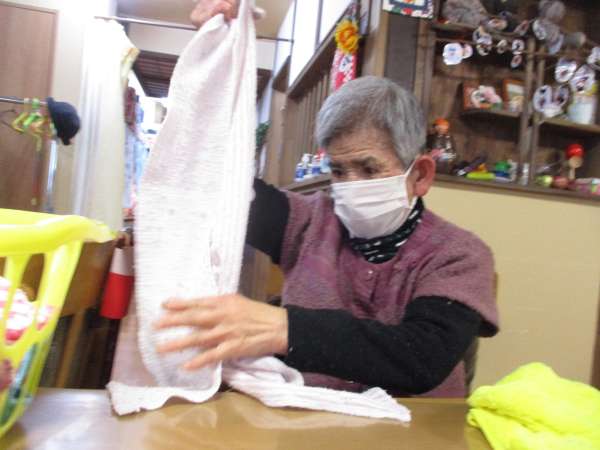 洗濯物を干して下さる母達ほっとした顔揺れるハート