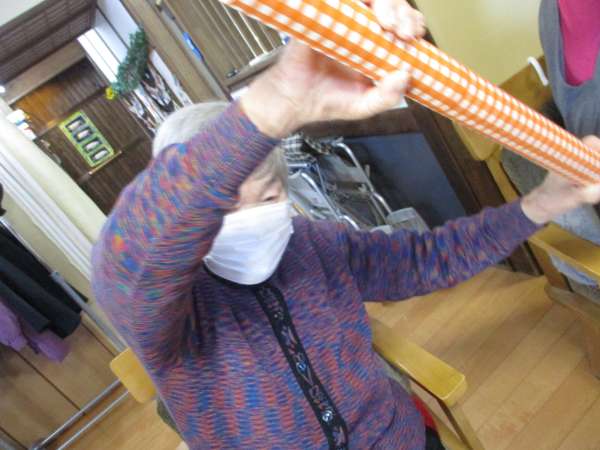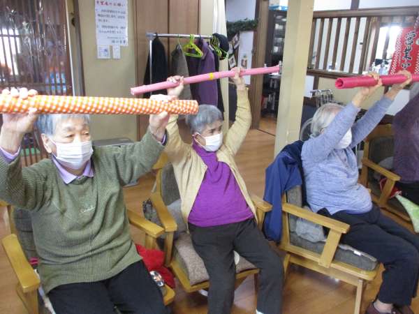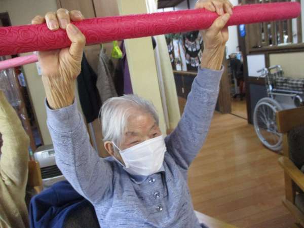 棒を持つことで、運動範囲を一定にすることができ、無理の無い安定した運動が可能となります。