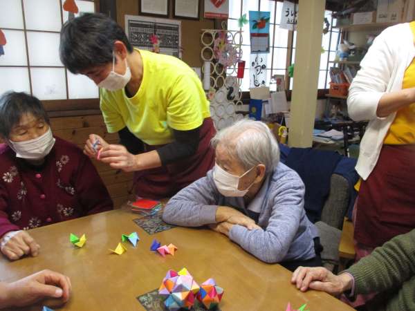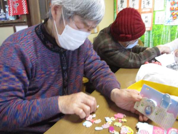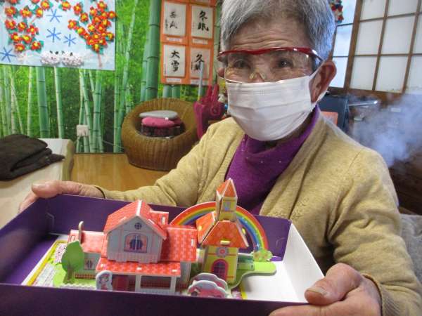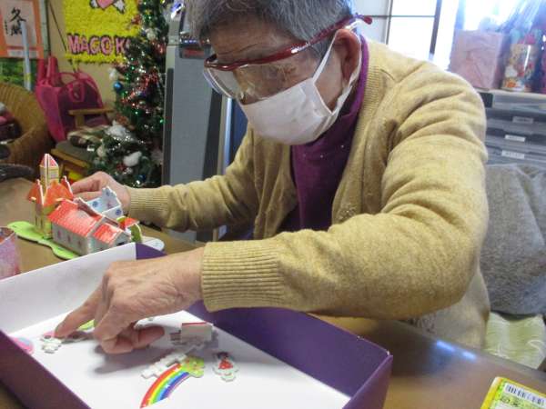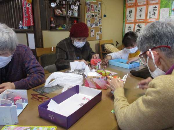 こちらの母たちは、先週のドールハウス制作の続きに挑戦