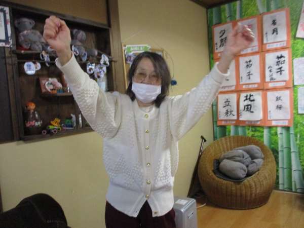 元気なかけ声にお仲間さんも手を伸ばして\(^o^)/バンザイ