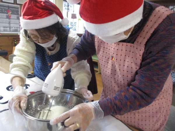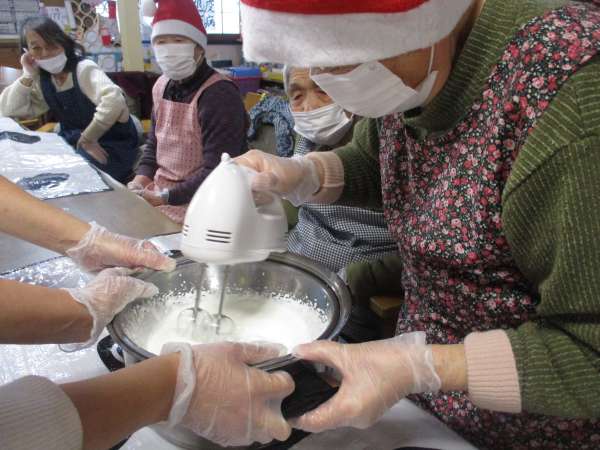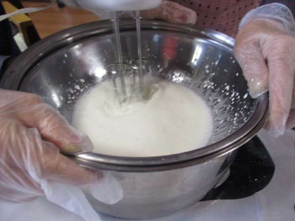 協力して泡立てていただきました