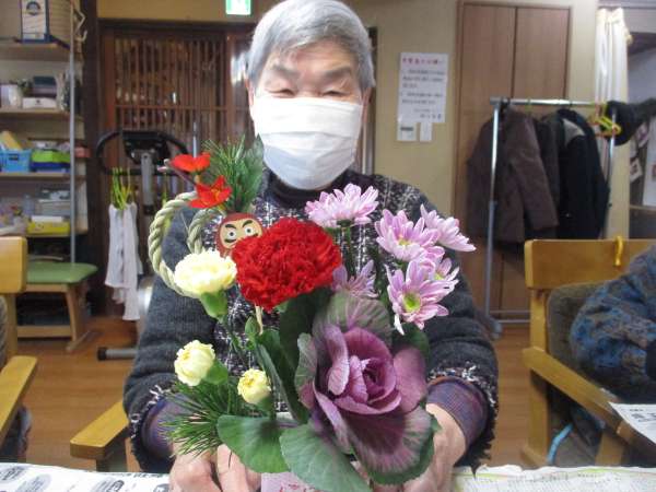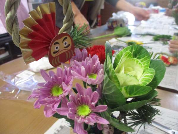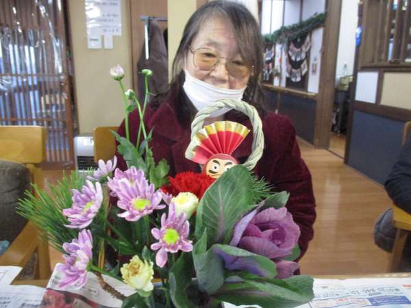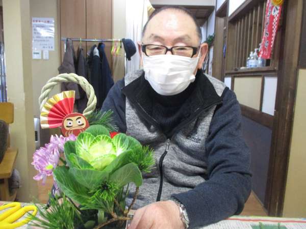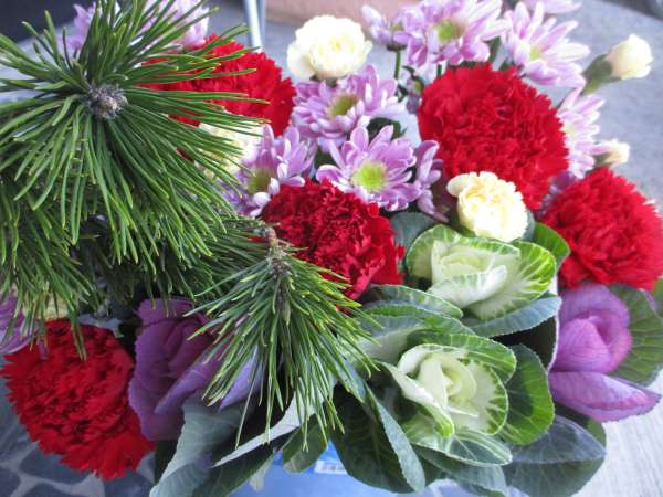 お花はお正月らしい葉牡丹と松