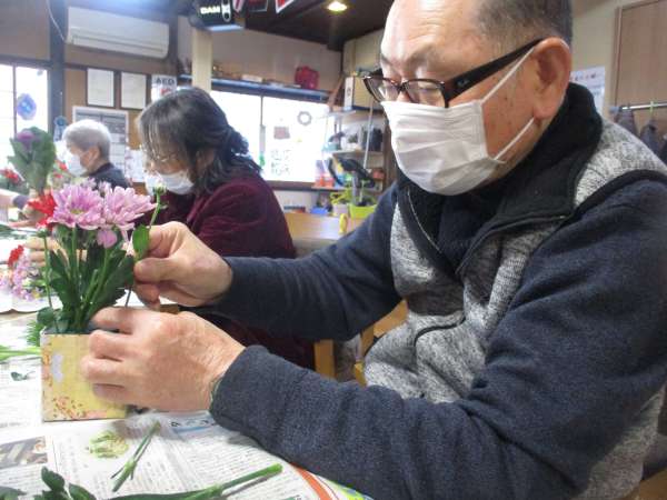 談笑されながらお花を挿していただきました