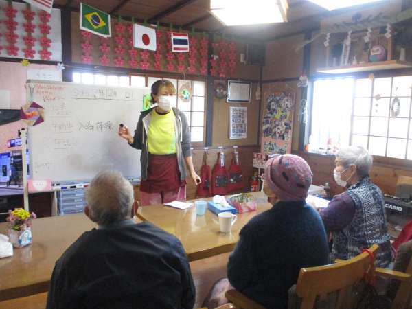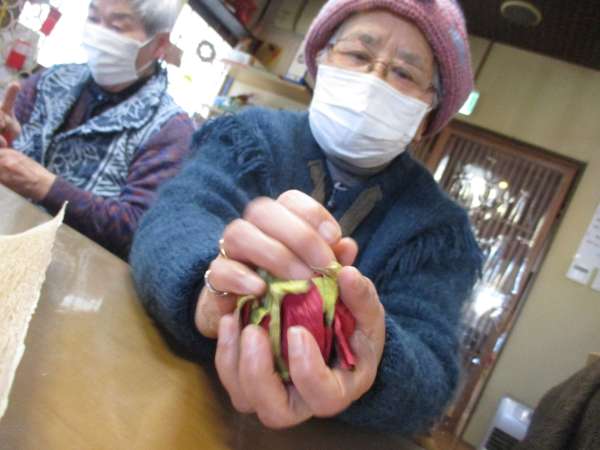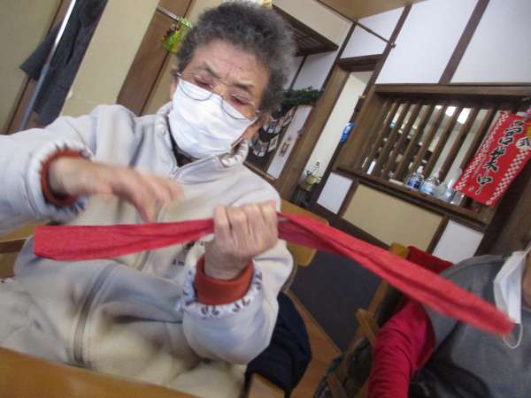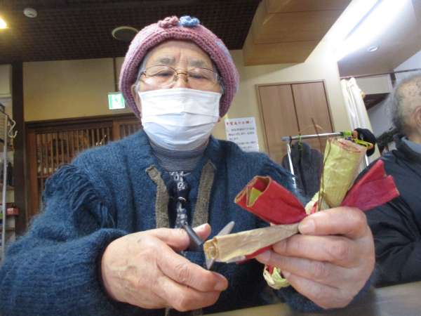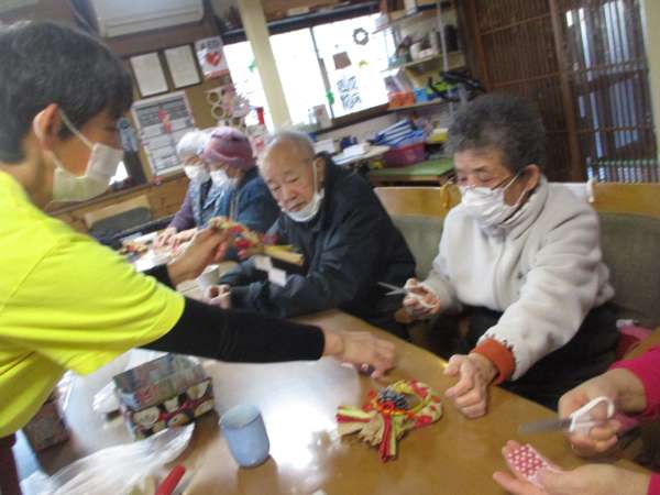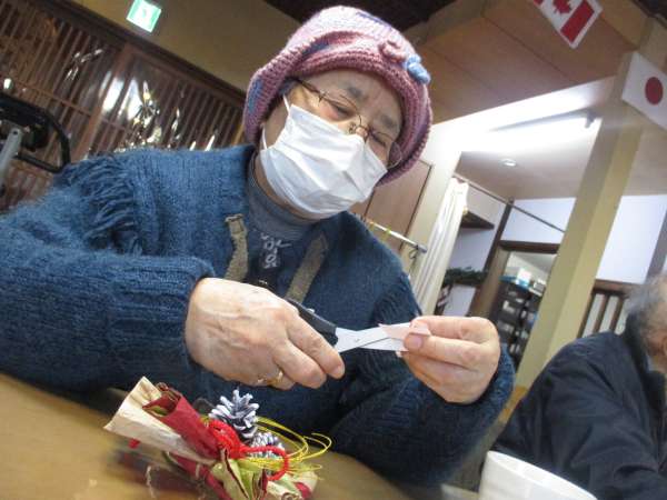 本日はレクリエーションで制作予定の正月飾りの話題となりました