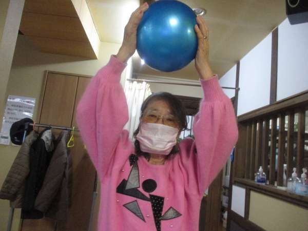 ボール体操では、ボールを回したり、持ち上げたり