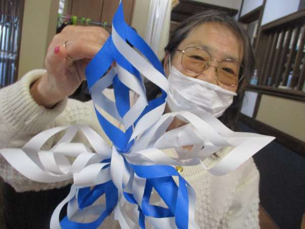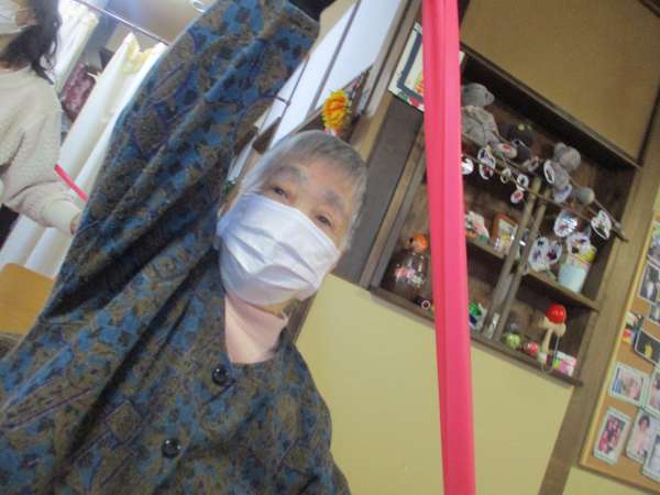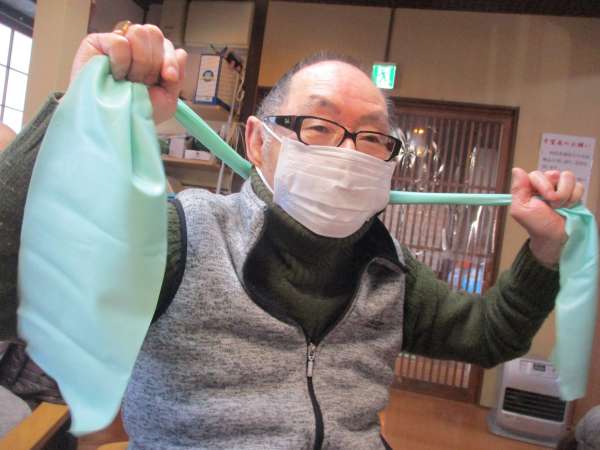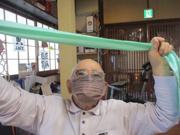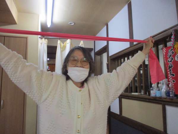 ゴムバンドを使った体操で普段使っていない筋肉を動かしたり、