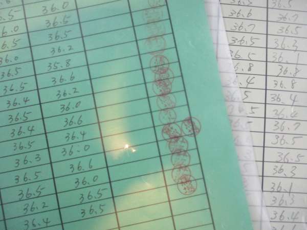 ご家族様にもご協力頂き、体温をご記入頂いております