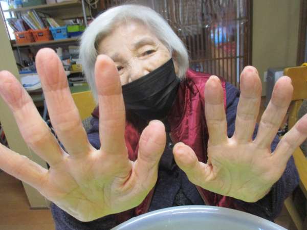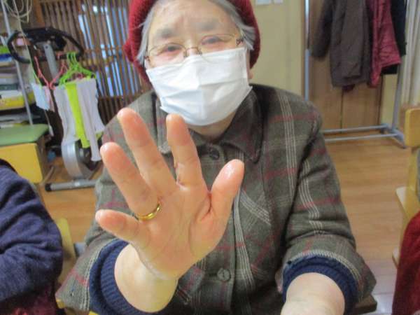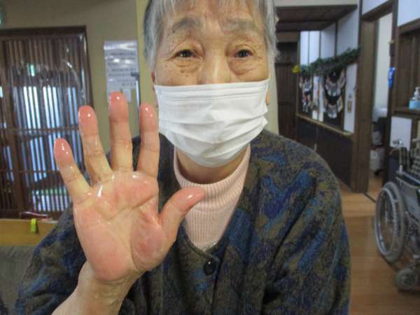 皆さんの手がピンク色になりました