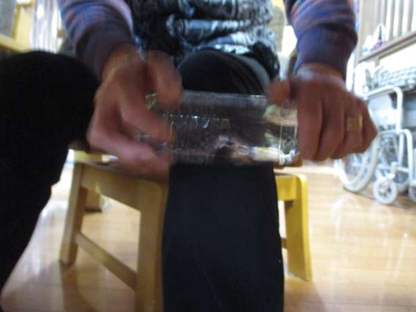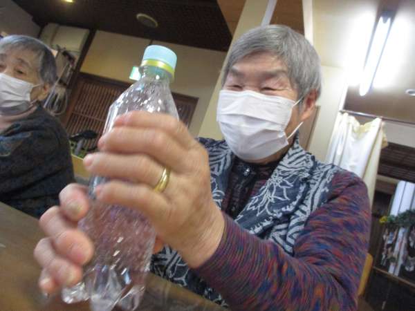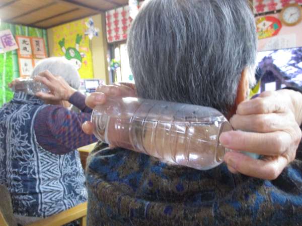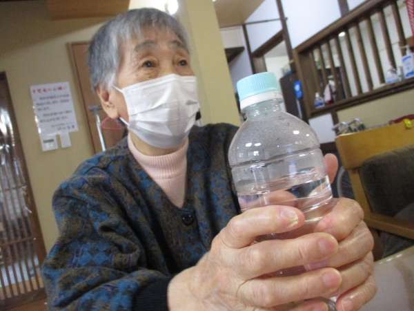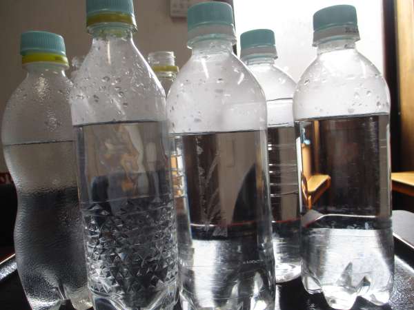 ペットボトルにお湯を入れて