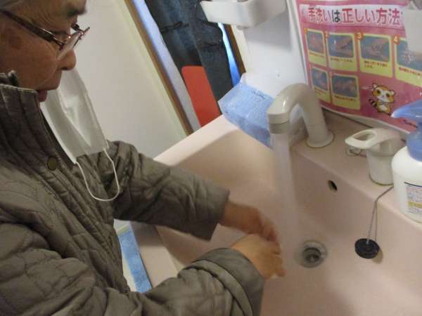 手洗いうがいをしっかりと行いますわーい (嬉しい顔)手 (パー)