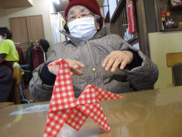 母が、作った折り紙わーい (嬉しい顔)ハートたち (複数ハート)